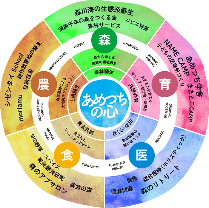 森の国Valleyでは、四万十川源流の恵みに感謝し、あめつち(天地)の声に耳をすませ、地球と人が健康に生きる社会を目指しています。