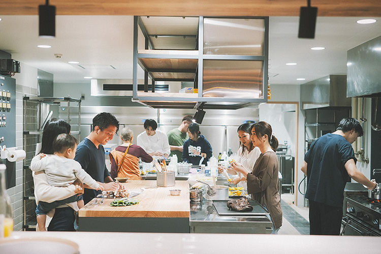 料理人が監修した本格的な多機能オープンキッチン。地元の旬食材や基本的な調味料もご用意しています。