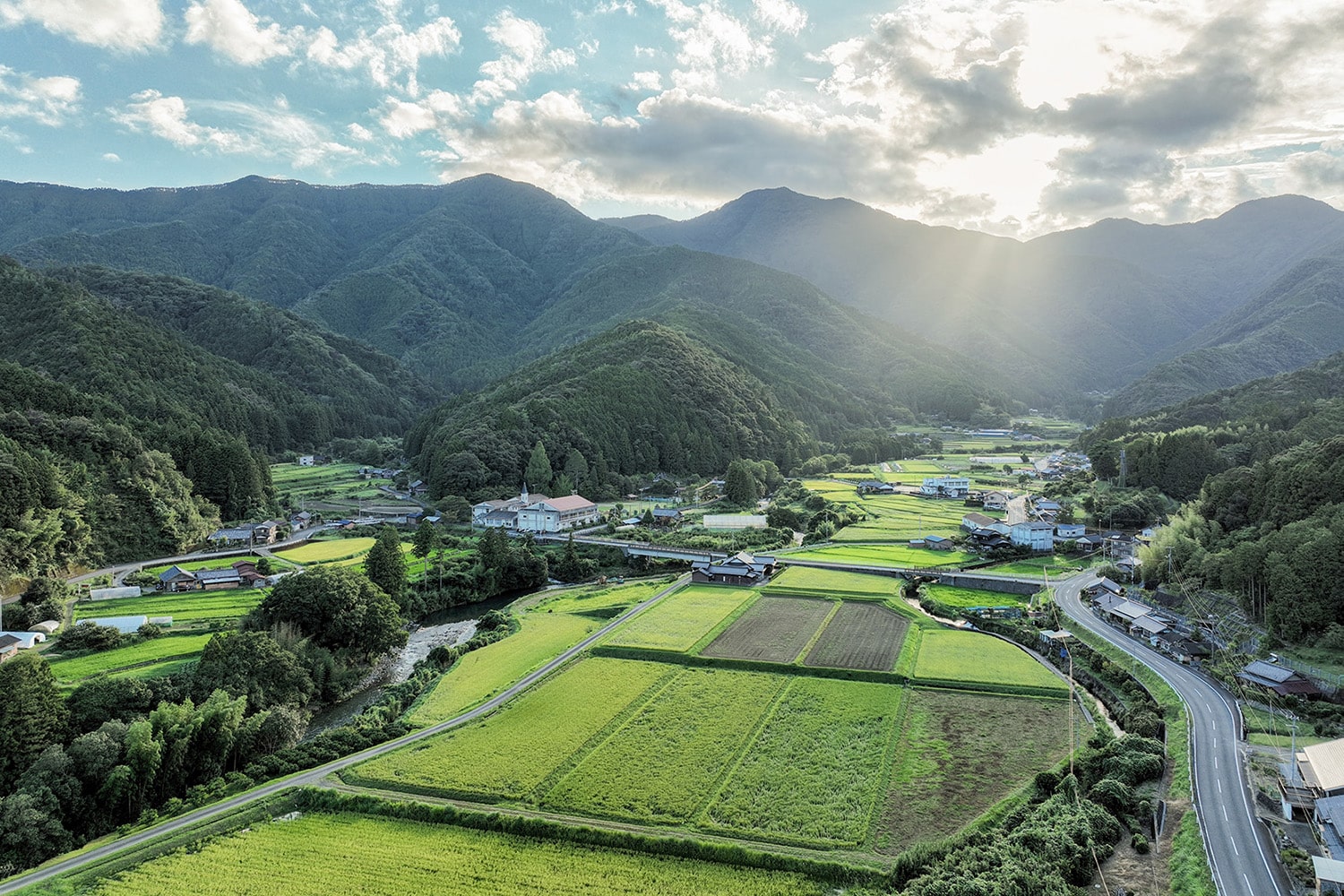 水際のロッジが位置する、足摺宇和海国立公園 滑床渓谷の麓に広がる里山。